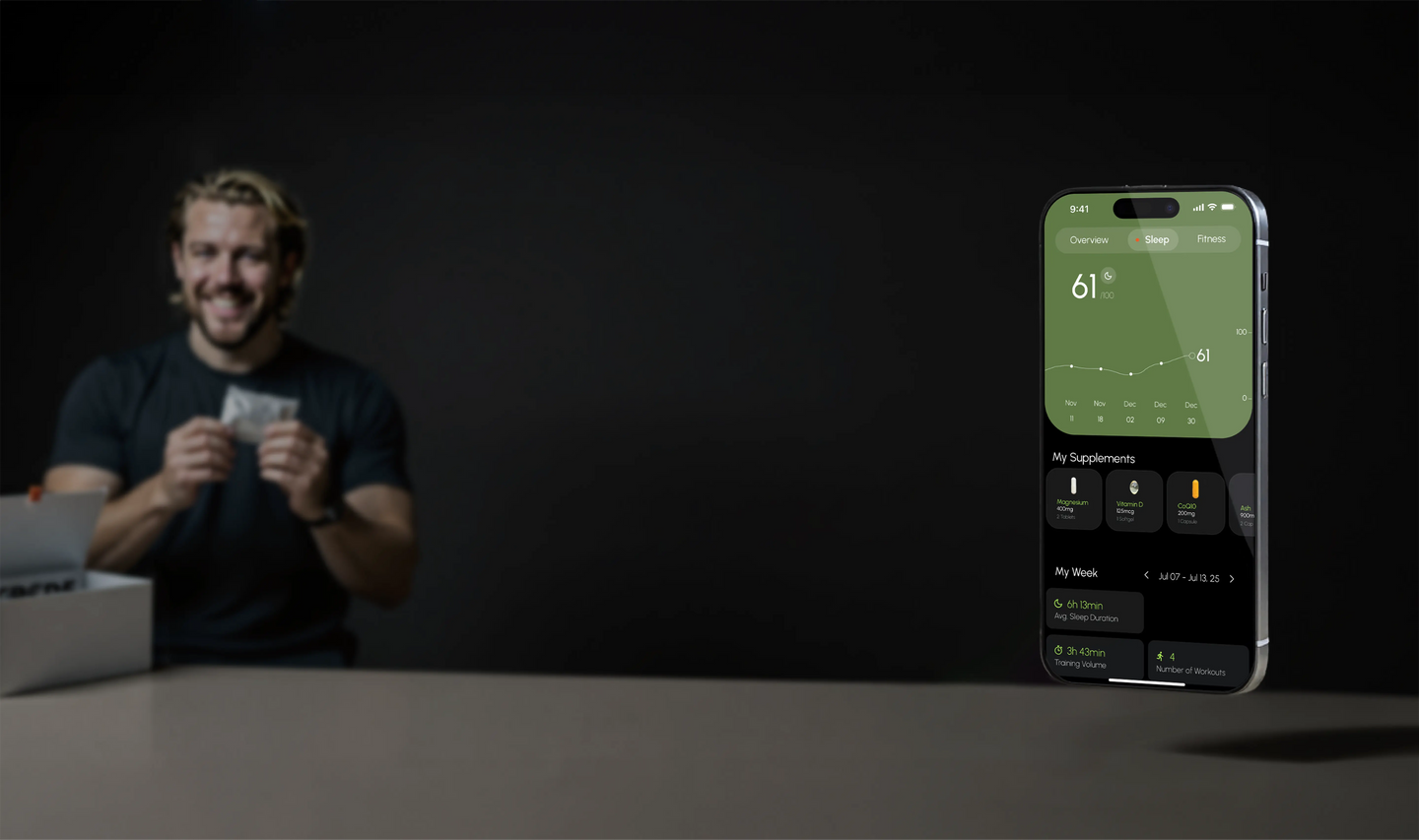 Track how your body responds to each supplement, from deeper sleep to faster recovery. Watch your daily metrics evolve and understand the direct connection between what you take and how you feel.