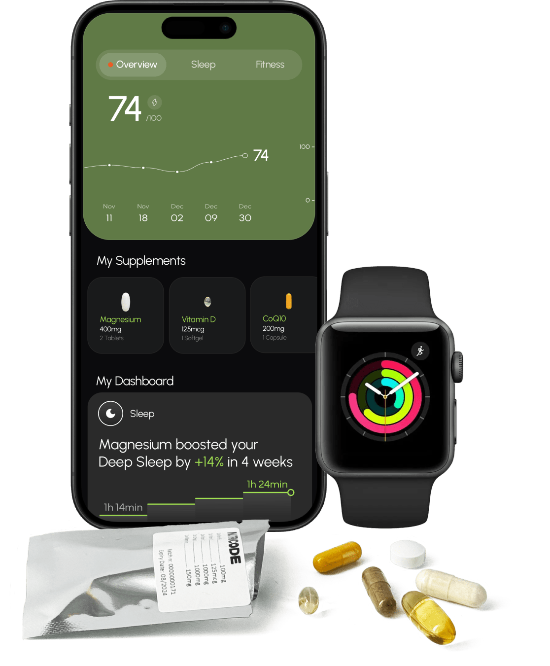 Once a supplement is introduced, Nutricode monitors your wearable and lifestyle data to verify that it’s improving the specific metric it targets.